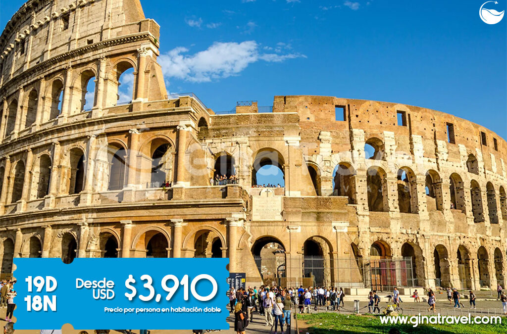 Desayuno. Por la mañana visita panorámica con guía local: el Coliseo, los Foros Romanos, el Arco de Constantino, la Plaza Venecia, el Vaticano y la Basílica de San Pedro. Posibilidad de realizar la excursión opcional a los Museos Vaticanos y Capilla Sixtina. Alojamiento.