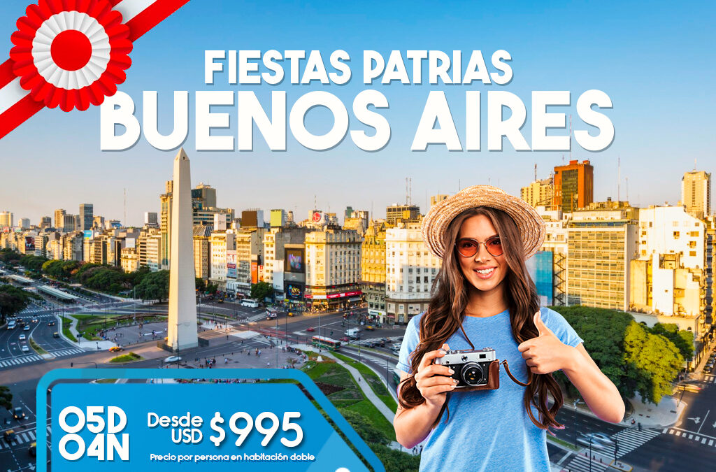 ¡Celebra Fiestas Patrias en Buenos Aires! Aprovecha nuestros paquetes con vuelos, hotel y tours incluidos. Disfruta del tango, la gastronomía y los mejores atractivos de la ciudad. ¡Vive una experiencia única estas Fiestas Patrias!. COD: AG