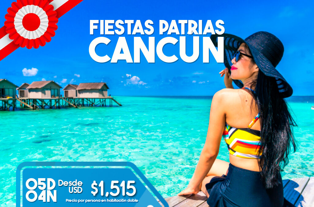Paquetes Fiestas Patrias a Cancún, uno de los destinos mas populares de México es Cancún, el lugar ideal para vacacionar y salir de la rutina diaria, es el único destino que tiene el mar azul, cuenta con un clima perfecto todo el año. Paquetes a Cancún resérvalos ya!!! COD: VID